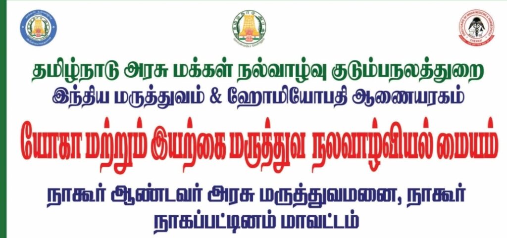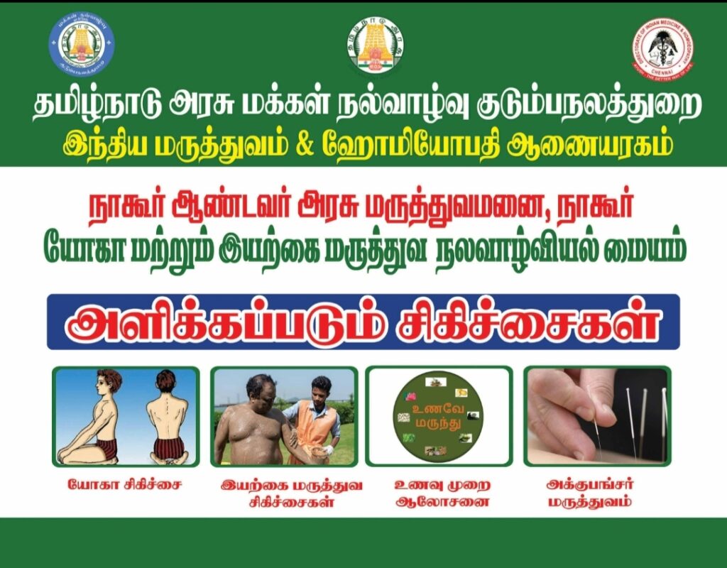 இந்திய மருத்துவம் மற்றும் ஹோமியோபதி துறை சார்பில், யோகா மற்றும் இயற்கை மருத்துவ பிரிவுகள்,
