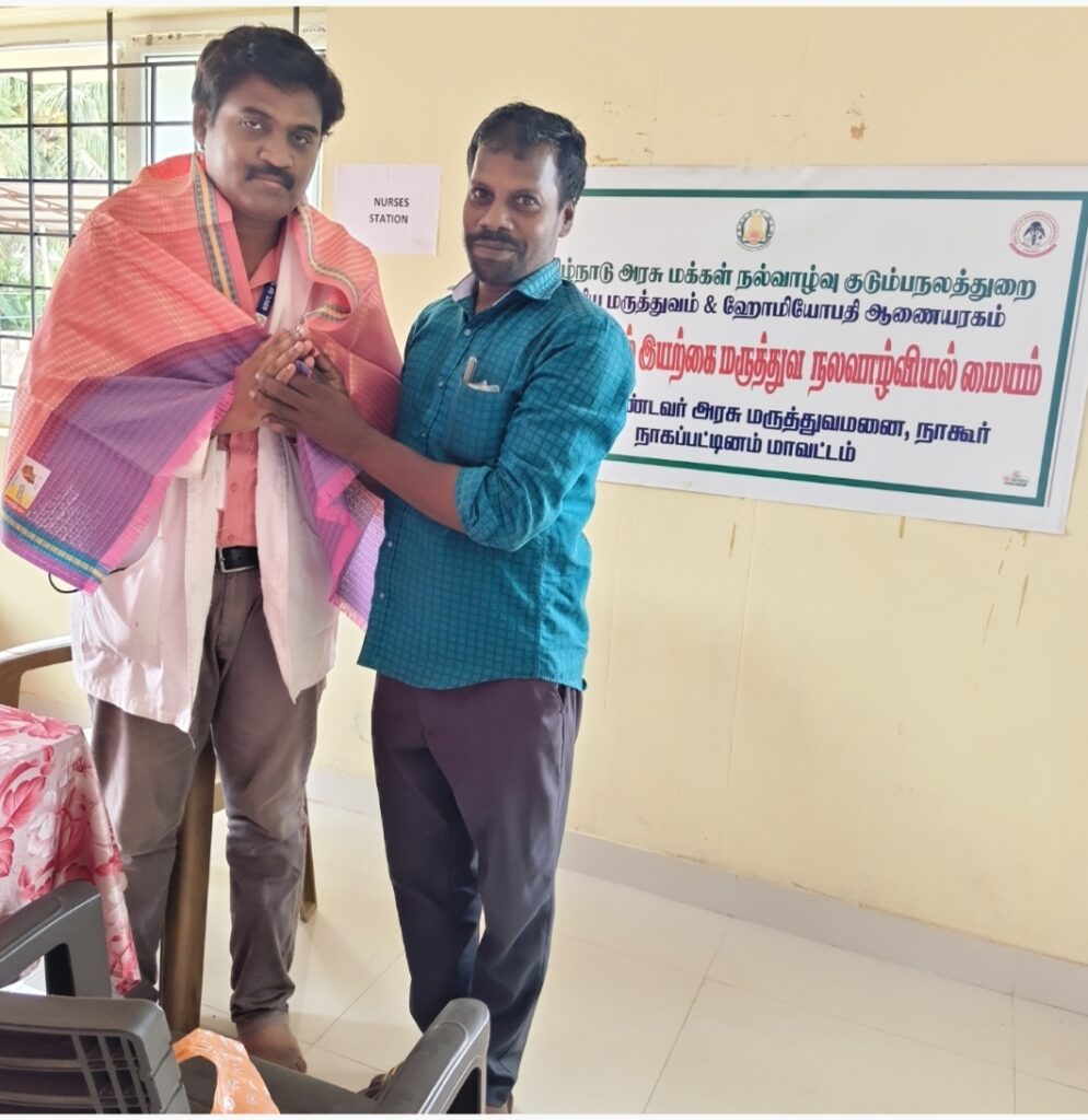 நல்வாழ்வியல் மாவட்ட சித்த மருத்துவ அலுவலர் மரு. R. கனிமொழி. B. S. M. S, MD(siddha) நாகப்பட்டினம் அவர்கள் நல்வழிகாட்டுதல் களுடன் செயல் பட்டுவருகிறத்துசெயல் பட்டு வருகிறது. இயற்கை மருத்துவமனையில், யோகா மற்றும் இயற்கை மருத்துவ பிரிவுகள் துவங்கப்பட்டுள்ளன.