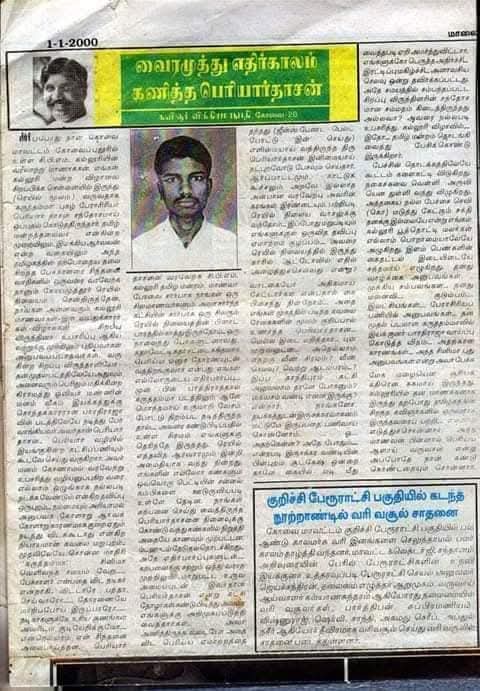 அந்த பேச்சின் சாராம்சத்தை “வைரமுத்து எதிர்காலம் கணித்த பெரியார் தாசன்” என்னும் தலைப்பிட்டு மாலைமுரசு கோவை பதிப்பில் கட்டுரையாக நான் எழுதியது 1-1-2000 ல் பிரசுரமானது.