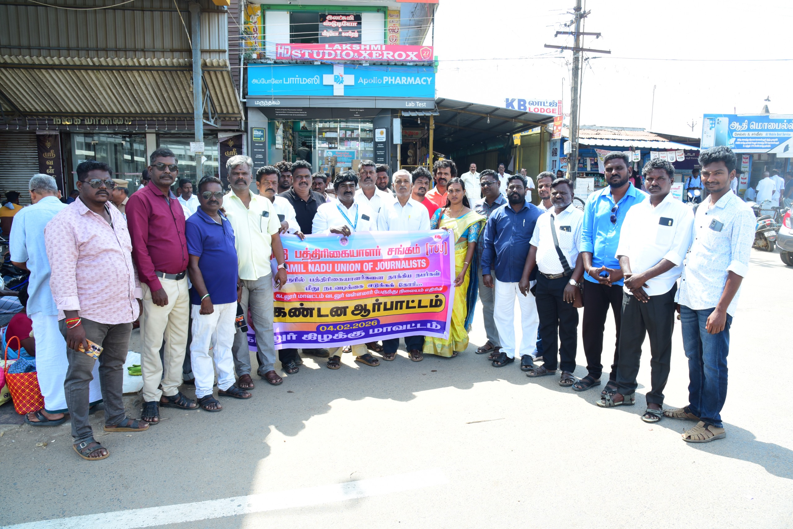 கடலூர் மாவட்டம் வடலூர் பேருந்து நிலையம் அருகே தமிழ்நாடு பத்திரிக்கையாளர் சங்கம் சார்பில் கண்டன ஆர்ப்பாட்டம் நடைபெற்றது.