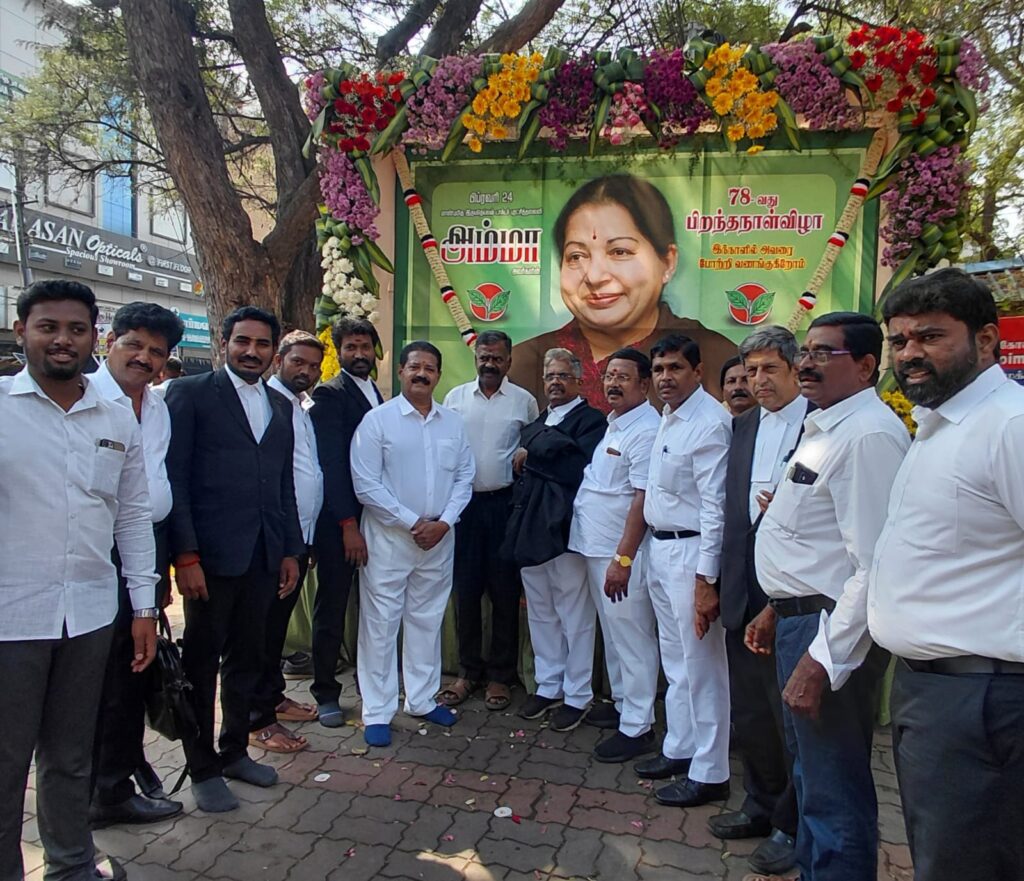 கோவை மாவட்ட அதிமுக வழக்கறிஞர்கள் பிரிவு சார்பில் மாவட்ட நீதிமன்றத்தில் 4வது வாயில் பகுதியில் புரட்சி தலைவி 78 வது பிறந்தநாள் விழா…!! வழக்கறிஞர் கோவிந்தராஜ் பங்கேற்பு…!!
