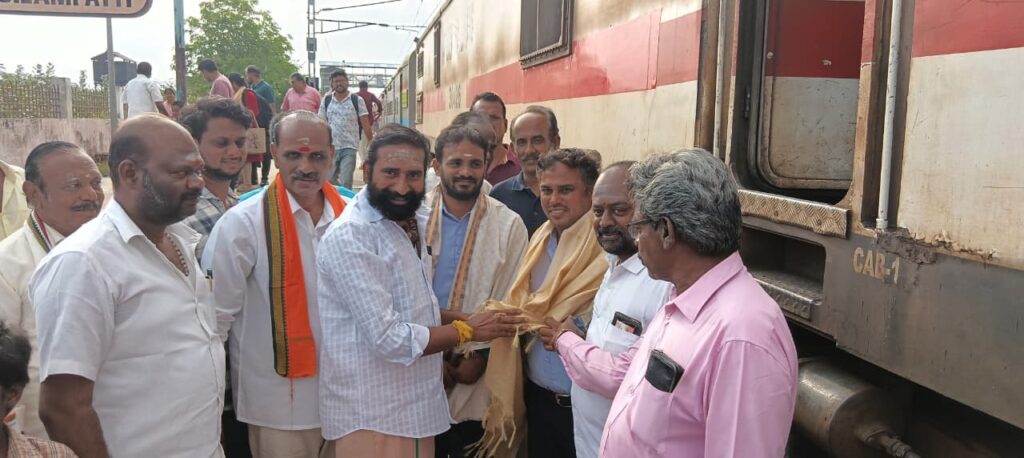 ரயில் எஞ்சின் ஓட்டுனர்களுக்கு பொன்னாடை அணிவித்து பாஜக நிர்வாகிகள் வழி அனுப்பி வைத்தனர்.
