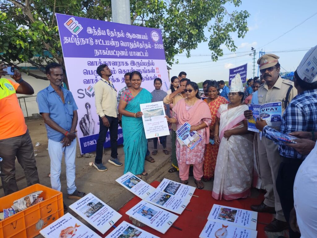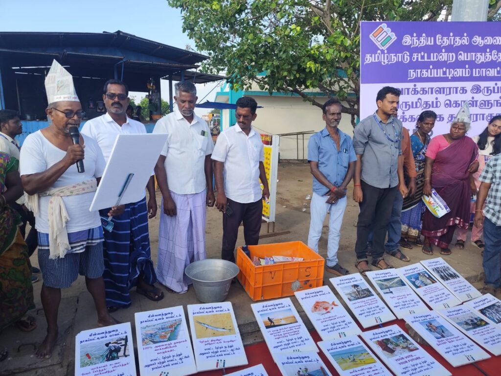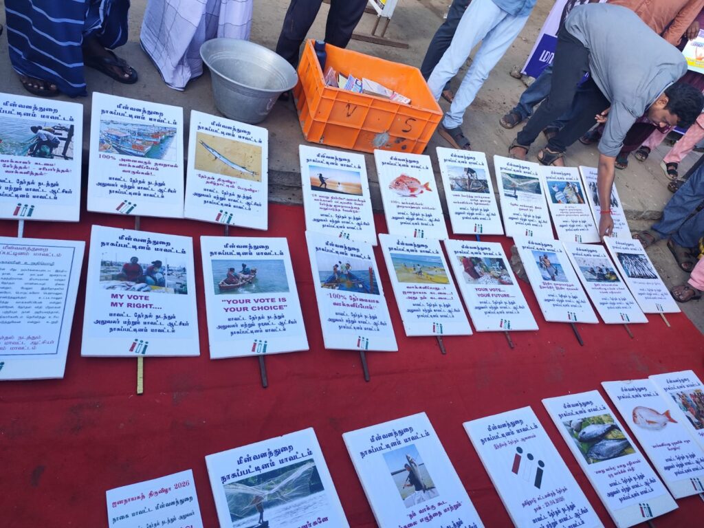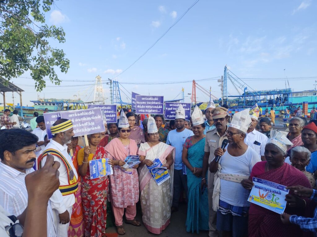 நாகப்பட்டினம் மாவட்டத்தில் 100% வாக்குப்பதிவை உறுதி செய்யும் நோக்கில், அக்கரைப்பேட்டை மீனவர் துறைமுகத்தி விழிப்புணர்வு …..!!