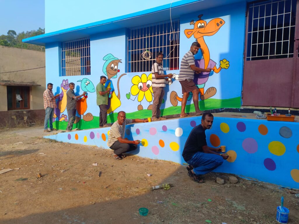 அதன் பின்னர்,, என்னுடைய தலைமையில் எங்கள் அரசு பள்ளி ஆசிரியர்களான ரவிச்சந்திரன், பிரபு,கார்த்திகேயன், காளிதாஸ், செந்தில்குமார், மூர்த்தி மற்றும் நண்பர் வருண் பாபு ஆகியோர் விடுமுறை நாளான 14.3.2025 சனி மற்றும் 15.3.2026 இரண்டு நாட்களில் பள்ளிக்கு வண்ணம் அடித்து மாணவர்களுக்கு பிடித்தமான ஓவியங்கள் மற்றும் வகுப்புக்குள் பாடம் சார்ந்த ஓவியங்கள் வரைந்து கொடுக்கப்பட்டது.