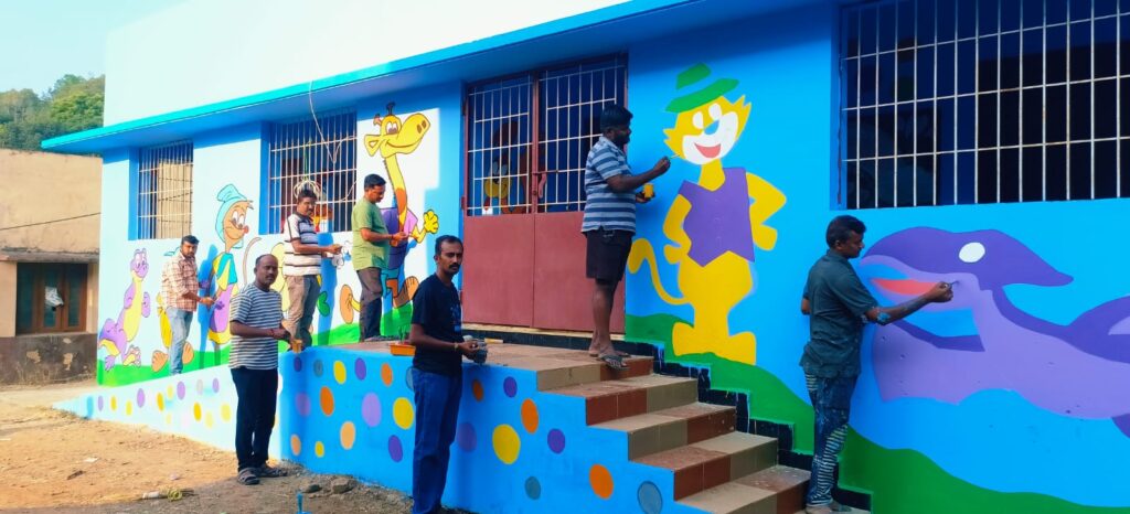 குஞ்சப்பனை அரசு பழங்குடியினர் உண்டி உறைவிட ஆரம்ப பள்ளியில் வண்ண ஓவியங்கள் வரைந்து அழகுபடுத்திய பட்டாம்பூச்சி அறக்கட்டளை குழுவினர்…!! பொது மக்களிடம் குவியும் பாராட்டு…!! அக்கப்போர் நாளிதழ், akkappore.news சொடுக்குங்க
