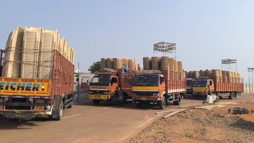 விழா மேடை பொதுமக்கள் அமரும் பகுதி, பொதுமக்கள் அமரும் நாற்காலிகளும் மைதானத்திற்கு கொண்டு