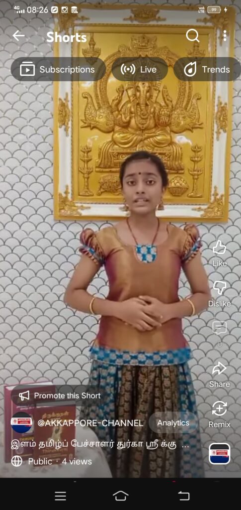 மலேசிய மண்ணில் தாய்த்தமிழில் உடல் மொழியோடு சரளமாக பேசி அசத்தும் சின்னஞ்சிறு சிறுமி துர்கா ஸ்ரீ – காணொலியுடன்….!! தலை வணங்கி வாழ்த்துகிறது…அக்கப்போர் நாளிதழ் akkappore.news சொடுக்குங்க