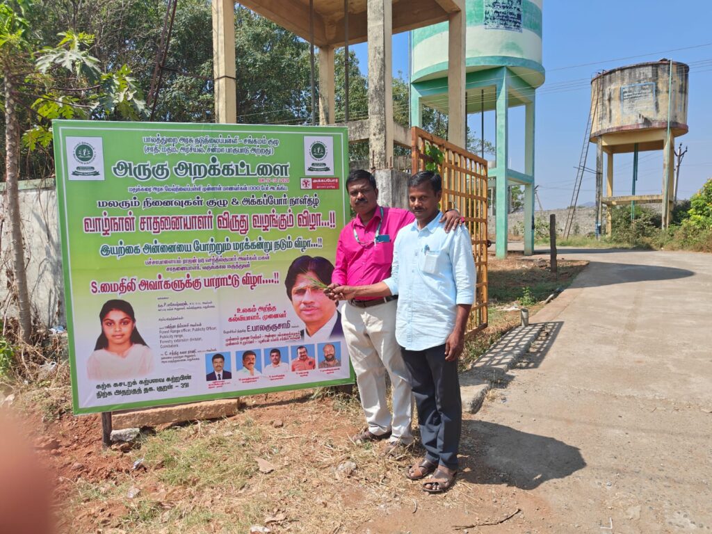 பாலத்துறை மின்சார வாரியம் உதவி மின்பொறியாளர் செந்தில்குமார், அருகு அறக்கட்டளை பொருளாளர் பச்சாபாளையம் செந்தில்குமார்,