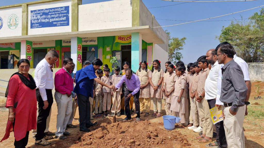 வாழ்க்கையில் சாதனையாளராக மாணவர்களுக்கு 6 பண்புகள் அவசியம்…!! கோவையில் பாலத்துறை அரசு பள்ளியில் மரக்கன்று நடும் விழாவில்