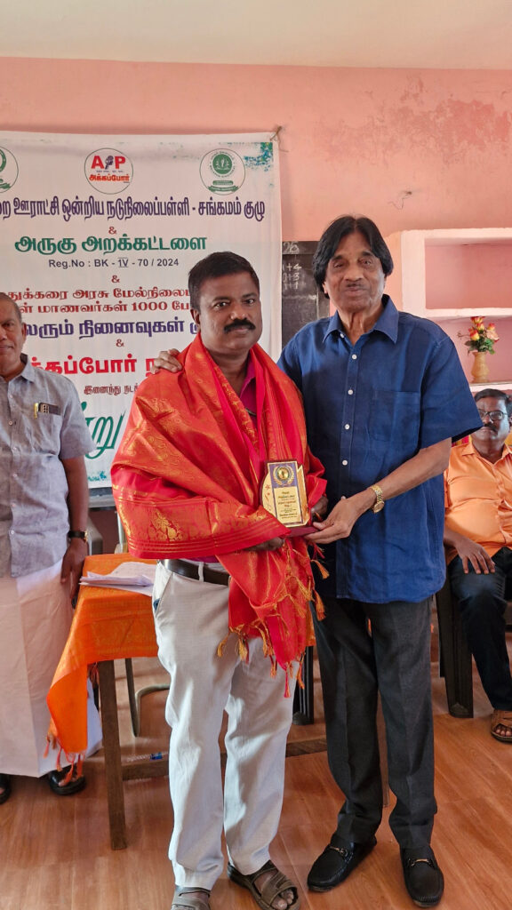 சார்பில் வாழ்த்து கவிதை வாசித்து “வாழ்நாள் சாதனையாளர்” விருதும் வழங்கி கவுரவிக்கப்பட்டது.