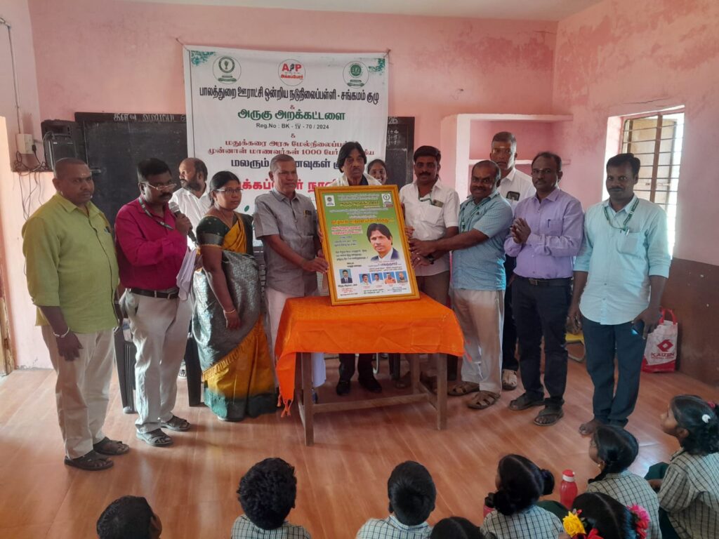 விழாவில் பள்ளி தலைமை ஆசிரியர் ஜெபபிச்சை மெடோஸ் தலைமை வகித்தார். மலரும் நினைவுகள் அறக்கட்டளை பொருளாளர் எஸ்.வி.கணேசன், அருகு அறக்கட்டளை பொருளாளர் செந்தில்குமார் முன்னிலை வகித்தனர்.