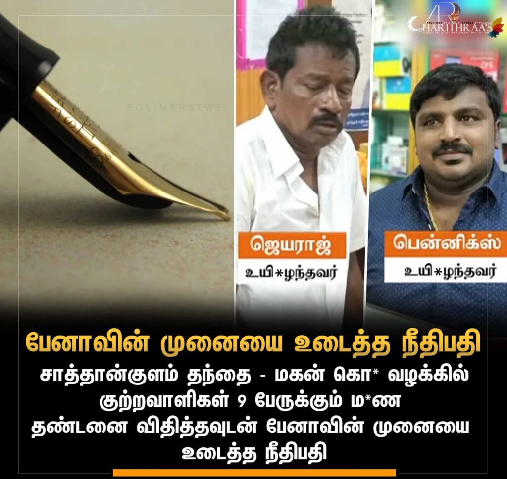 சாத்தான்குளம் தந்தை – மகன் லாக்-அப் டெத்..!! மரண தண்டனை கொடுத்த பிறகு ஏன் நீதிபதி பேனாவை உடைக்கிறார்…?அக்கப்போர் நாளிதழ் akkappore.news சொடுக்குங்க
